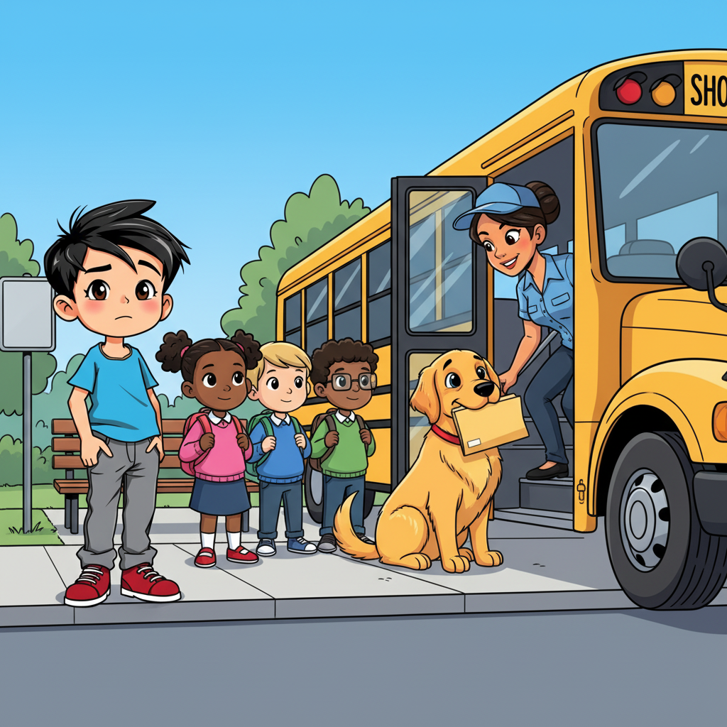 Bus Driver:Is… that dog carrying homework?