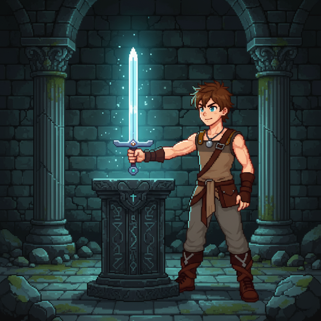 A brave and determined young hero, on a quest to find ancient artifacts. He possesses a strong sense of justice and an unwavering spirit.