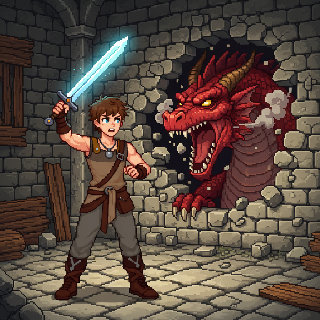 An ancient and fearsome dragon, guardian of the deepest dungeons, awakened by the disturbance of its slumber.